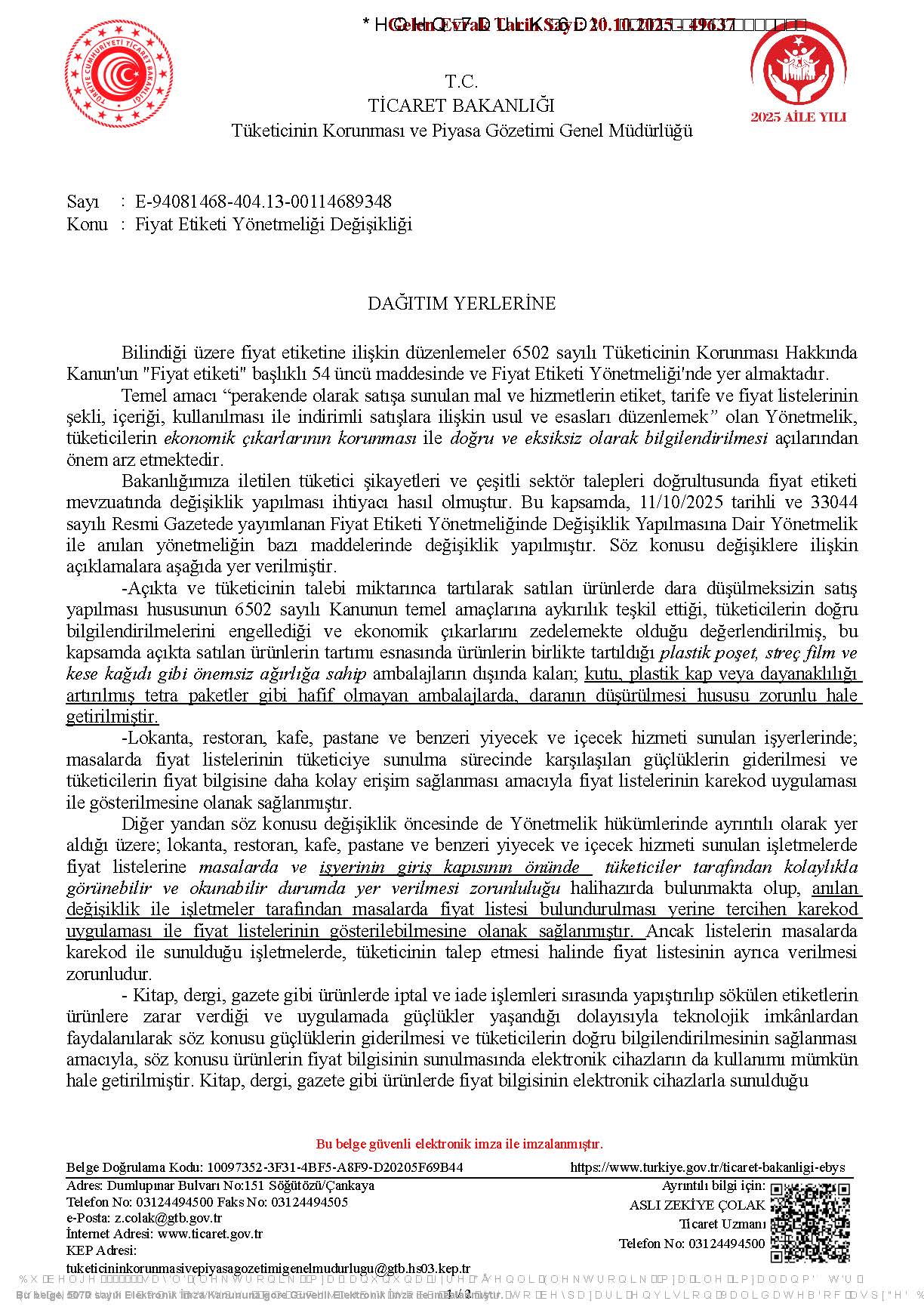 Cumhurbaşkanlığı Genelgesi Duyuru