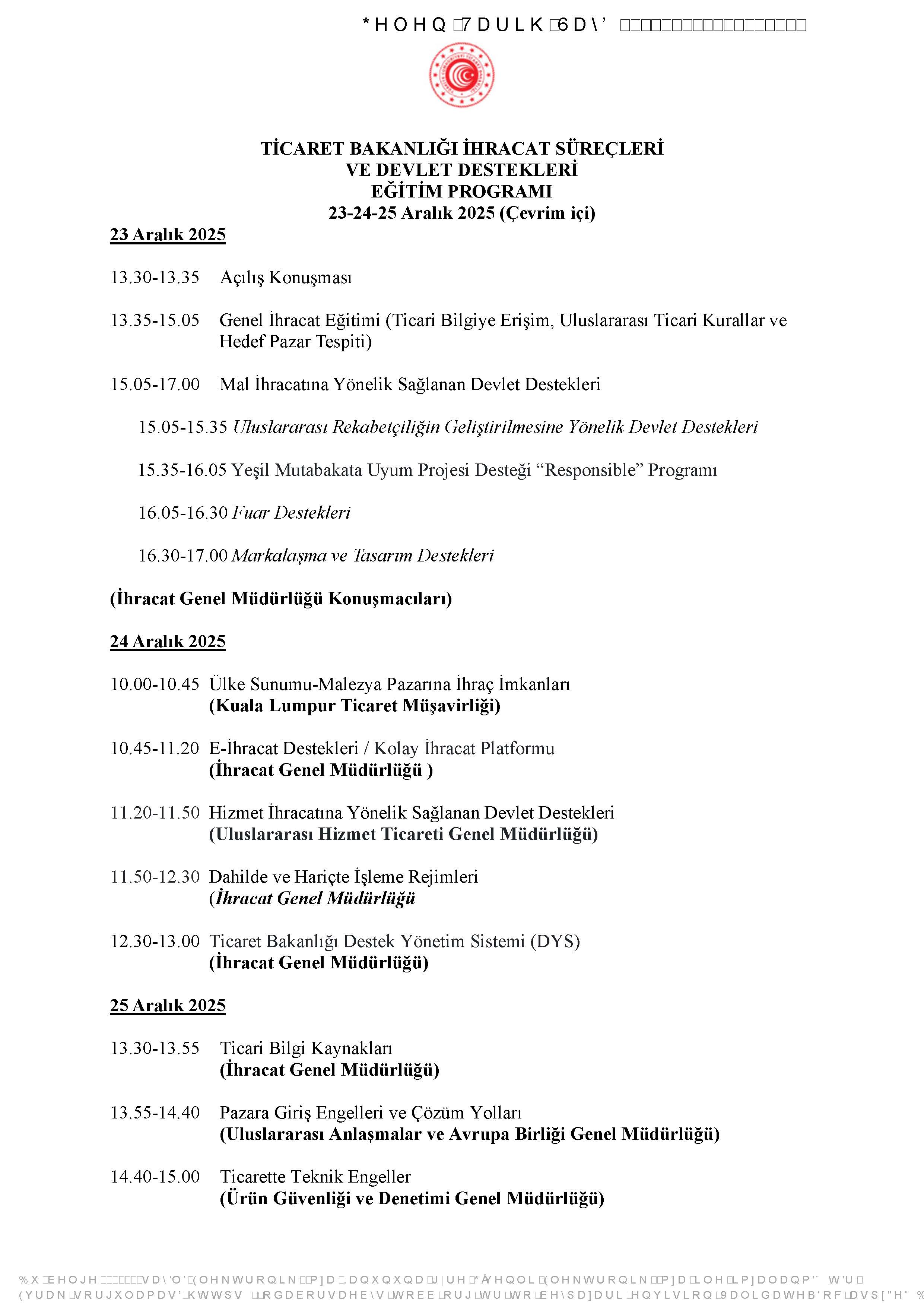 10 Aralık 2025 Ticaret Bakanlığı İhracat Süreçleri ve Devlet Destekleri Eğitim Programı Hakkında Sonraki