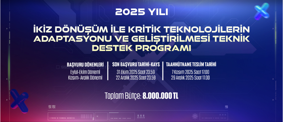 Ankara Kalkınma Ajansı tarafından yürütülen “İkiz Dönüşüm ile Kritik Teknolojilerin Adaptasyonu ve Geliştirilmesi Teknik Destek Programı (2025)” hakkında bilgilendirme toplantısı 14 Ekim 2025 Salı günü saat 14.00’te çevrim içi olarak gerçekleştirilecektir. Toplantıda; programın amaçları, öncelikleri, uygunluk kriterleri, başvuru koşulları, değerlendirme süreci ile KAYS üzerinden başvuru adımları ele alınacak ve katılımcıların soruları yanıtlanacaktır. Gündem (Özet) 1. Programın genel çerçevesi ve bütçe bilgisi (8.000.000 TL) 2. Öncelikler ve uygun başvuru sahibi/ortaklık yapıları 3. Destek kapsamı ve azami destek tutarı (eğitim/danışmanlık için 400.000 TL, KDV dâhil) 4. Uygulama süresi (azami 6 ay) 5. Başvuru dönemleri ve kritik tarihler 6. KAYS üzerinden başvuru süreci ve taahhütname/e-imza adımları 7. Soru-cevap Toplantıya katılımınız için Zoom bağlantısını kullanmanız yeterlidir. Toplantı Bilgileri • Tarih/Saat: 14 Ekim 2025 Salı, 14.00–14-45 • Platform: Zoom • Bağlantı: https://us06web.zoom.us/j/89428084846?pwd=ujgRmqehC487AT6019PbiKZqWotSe3.1 İletişim: This email address is being protected from spambots. You need JavaScript enabled to view it. Bilgilerinize sunar, toplantımızda sizleri aramızda görmekten memnuniyet duyarız. Saygılarımızla, Ankara Kalkınma Ajansı |