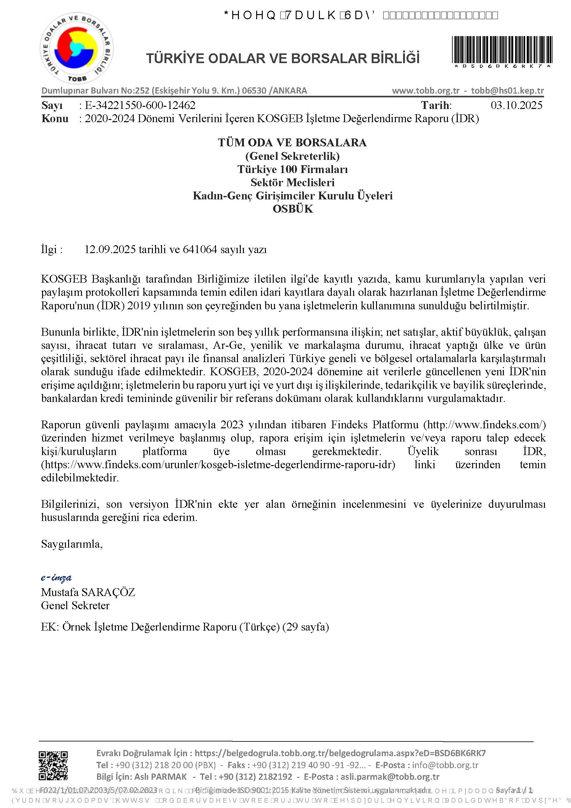 16 Ekim 2025 Duyurular 2020-2024 Dönemi Verilerini İçeren KOSGEB İşletme Değerlendirme Raporu (İDR) Önceki Sonraki