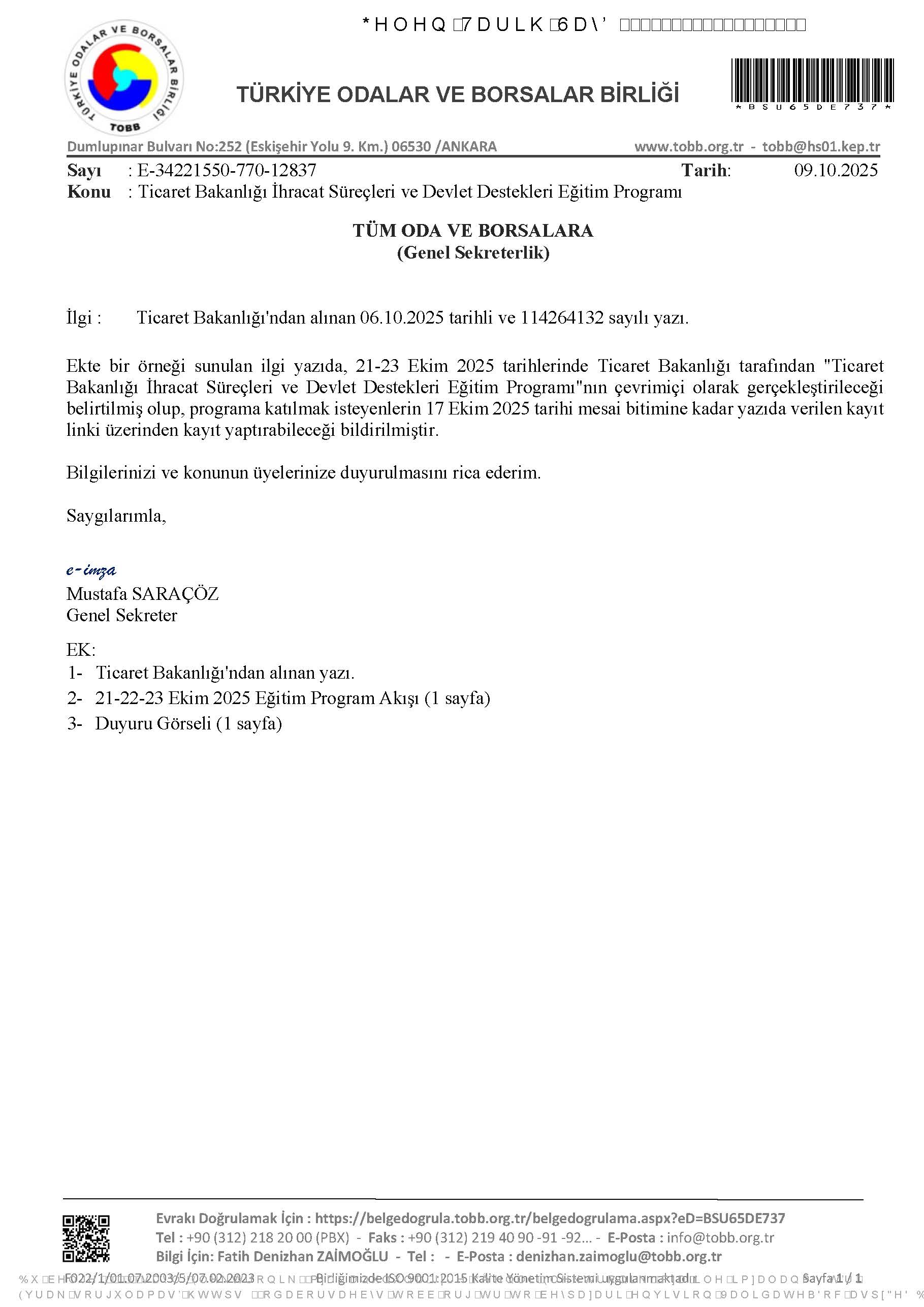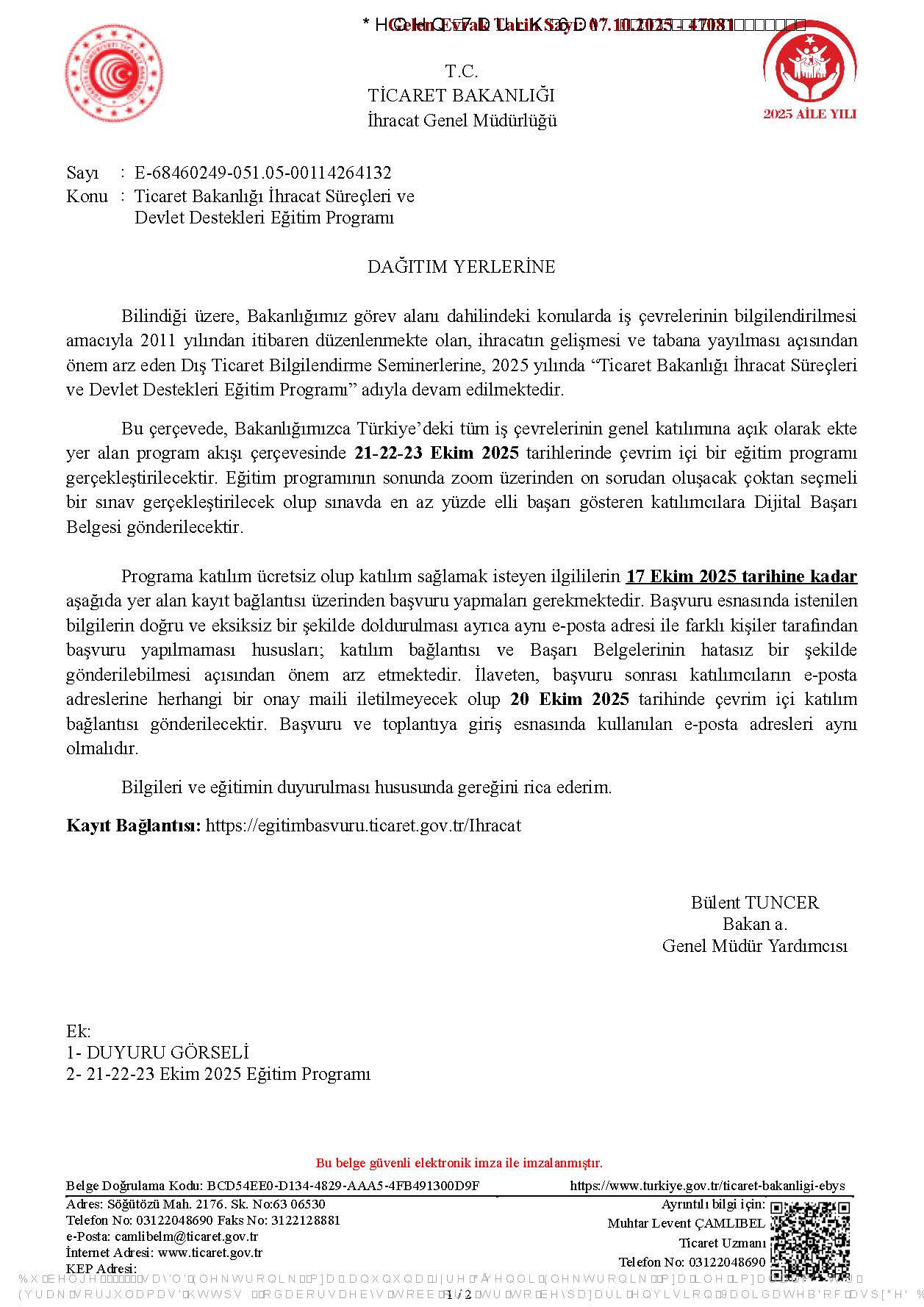 16 Ekim 2025 Duyurular Ticaret Bakanlığı İhracat Süreçleri ve Devlet Destekleri Eğitim Programı Sonraki