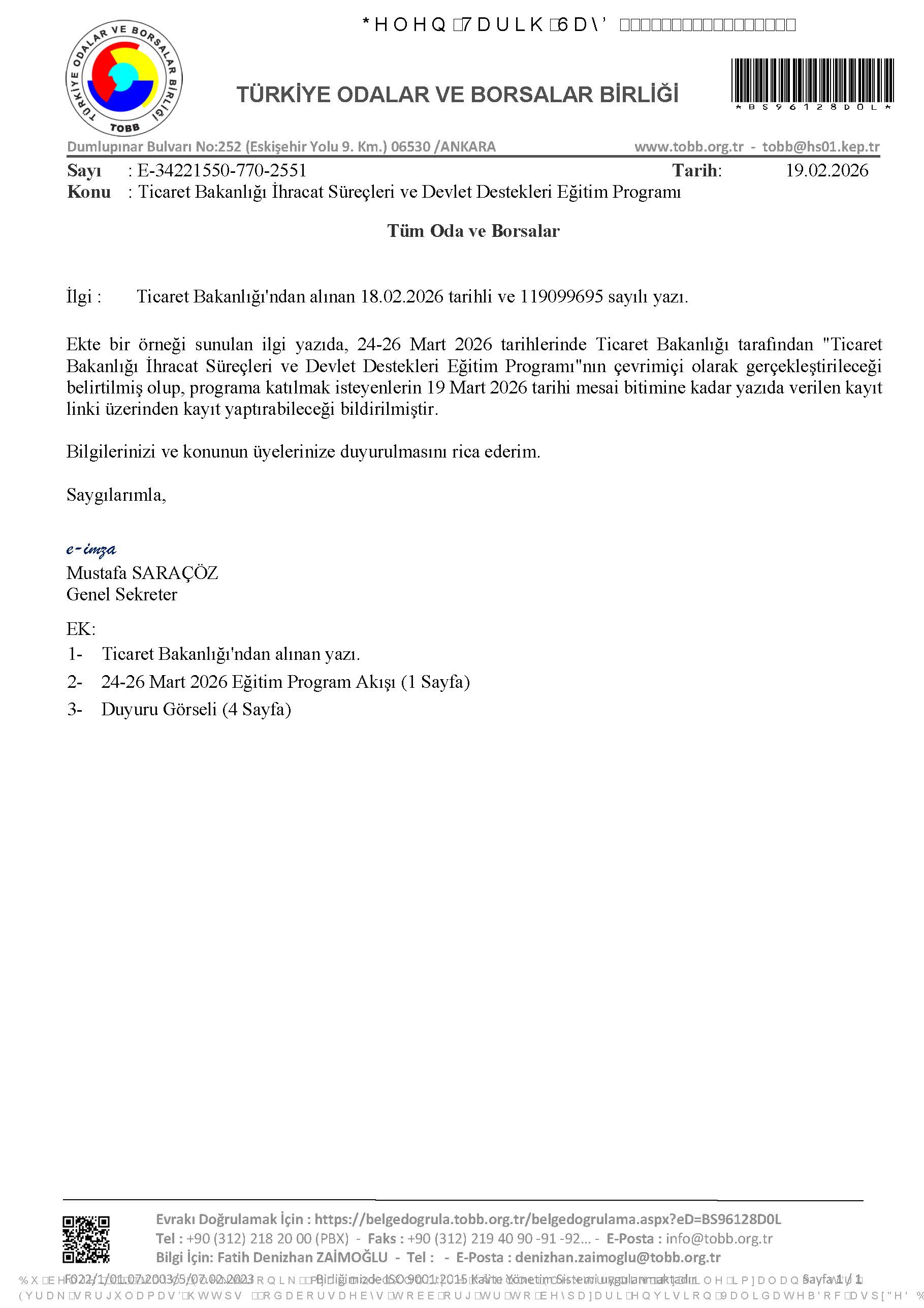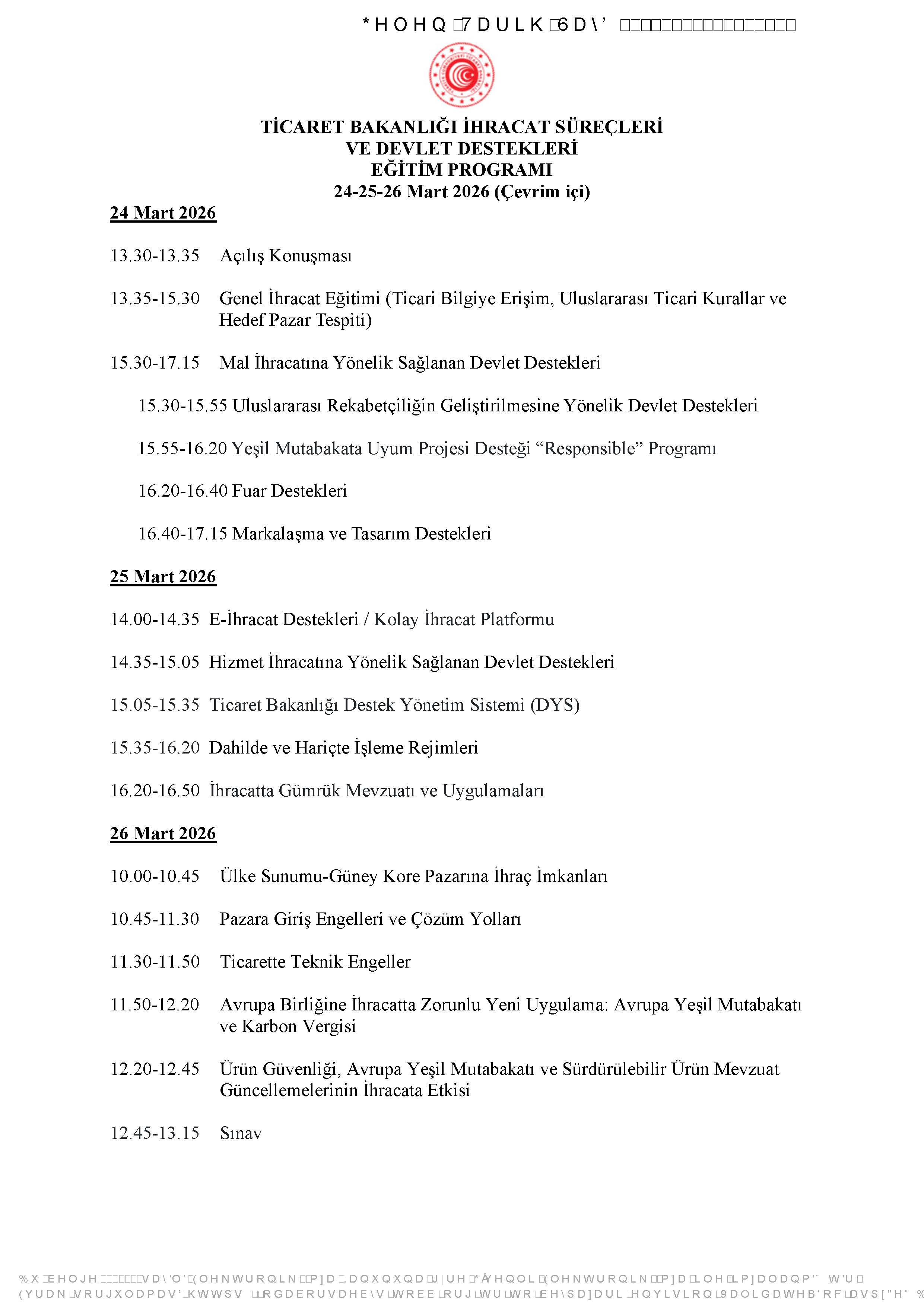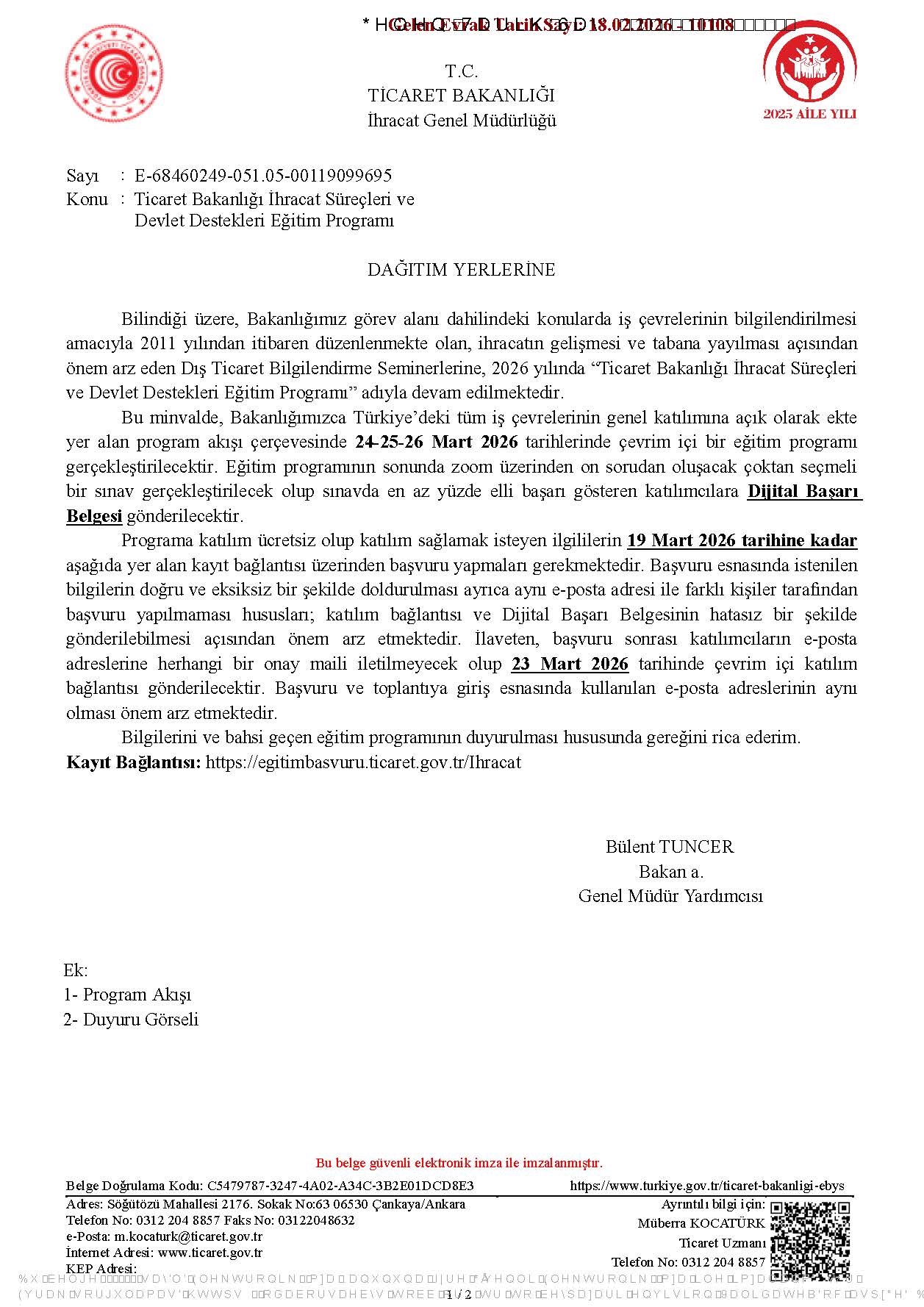 27 Şubat 2026 Duyurular Ticaret Bakanlığı İhracat Süreçleri ve Devlet Destekleri Eğitim Programı Sonraki